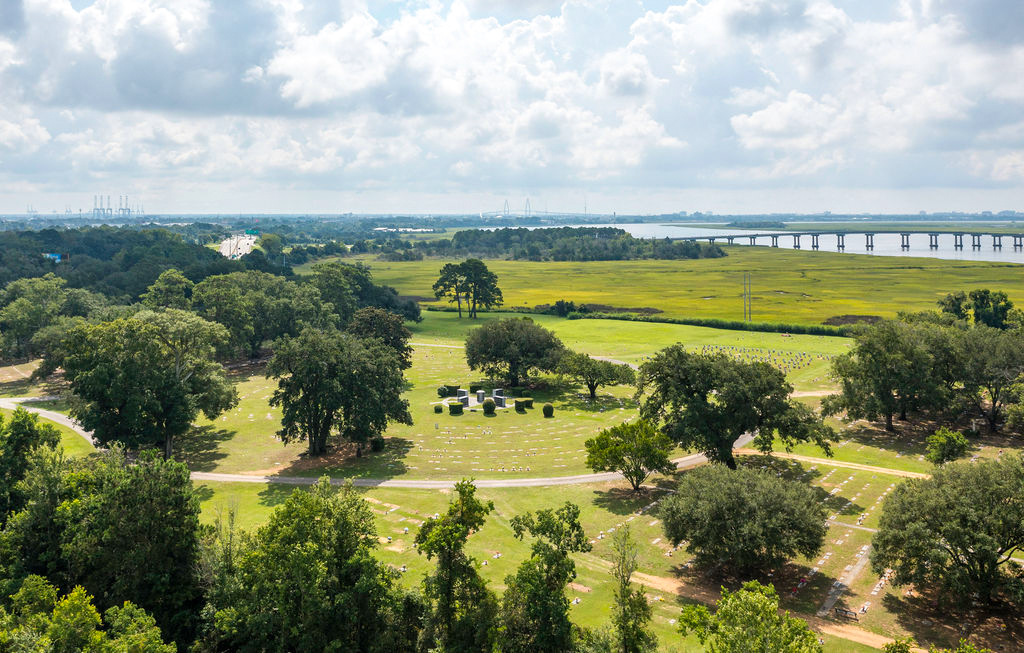Riverview Memorial Park was established in the 1880’s. We overlook the beautiful Ashley River and have large live oaks throughout the cemetery. The Cemetery is kept as natural as possible to maintain its beauty. We have 13 Gardens including a Veteran’s Garden and a New Columbarium for Inurnments. We are a Perpetual Care Cemetery – 10 percent of everything we sell goes into a perpetual care trust fund to assure the cemetery will be maintained forever.